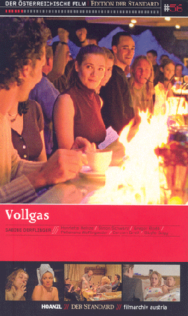 Beim "Vollgas geben" mit Vodka, Bier und One-Night-Stands ist die Kellnerin Evi (Henriette Heinze) vorne mit dabei. Daneben gibt es noch ein anderes Leben zu bewältigen: Dann, wenn es hell wird, muss Tochter Paula (Philomena Wolfingseder) zur Schule gebracht werden, Ein annähernd normales Familiendasein aufrecht zu erhalten erfordert zusätzliche Kraft. Vollgas erzählt also auch, ganz unsentimental und konsequent, von den Bedingungen, unter denen Arbeit heute stattfindet: von Arbeitsverhältnissen auf Zeit, von der neuen "Flexibilität". Das ist der Hintergrund, vor dem hier im Akkord ausgeschenkt wird - im Restaurant (morgens), auf der Piste (mittags), in der Disco (abends).